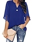 Dames Overhemd Blouse Chiffon-topjes Knop Effen Stijlvol Basic Klassiek Korte mouw V-hals Normale tops Casual Dagelijks Feestdagen blauw Zwart Wit Lichtgroen Wijn Zomer Lente