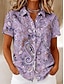 Dames Blouse Knop Afdrukken Bloemig Grafisch Vintage Tropisch Stijlvol Korte mouw Strakke ronde hals Normale tops Casual Feestdagen blauw Wit Geel Paars Groen Zomer Lente