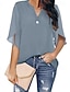 Dames Overhemd Katoenen linnen overhemden Zomer overhemd Normaal shirt Knop Effen Kleur Effen Vakantie Modieus Casual Halve mouw V-hals Normale tops Streetwear Strand Feestdagen blauw Zomer Lente
