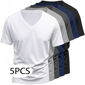 5 stuks heren t-shirt top korte mouw korte mouwen v-hals zomer alle seizoenen effen kleur effen basic casual 5-delige multipack vakantie straat casual witte top tee voor heren