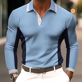 Voor heren Kleurenblok Poloshirts Lange mouw Poloshirt Revers Zakelijk informeel Buiten Sportkleding Alledaagse kleding 3D-afdrukken Knop Lente Herfst blauw Paars Bruin