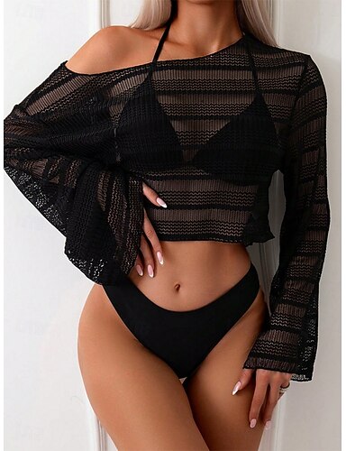 Dames Bikini 3 Delige Badpak Cheeky Slank Rugloos Vakantie Strandmode Effen Kleur Halter Hals Mouwloos Lange Mouwen Badpakken