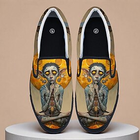Heren Mardi Gras Creatieve Alien Gezicht Print Instappers – Artistiek Kleurrijk Ontwerp voor Carnaval en Trendy Festivals