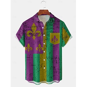 Mardi gras Voor heren Carnaval Overhemd Overhemd met knopen Korte mouw Mode-casual Vakantie Lahja Feestdagen Zomer Lente Strijkijzer shirts met kraag Voorste zak Groen