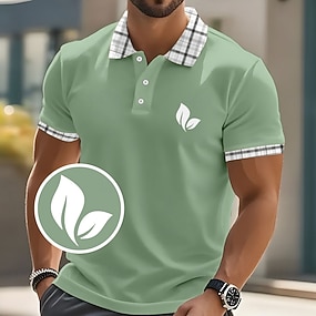 Voor heren Golfshirt Piqué poloshirts liiketoiminta Casual Strijkijzer Korte mouw Modieus Basic Effen Kleur Ruitjes Knop Logo Zomer Lente Lente & Herfst Normale pasvorm Wit Geel Marineblauw Groen