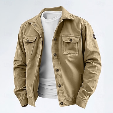 Voor heren Cargo-jack Tactische jas Chore-jasje Casual Uitgaan Windjack Binnenzak Lente Herfst Effen Modieus Klassiek Overhemdkraag Normaal Marineblauw Khaki Leger Groen Jacks