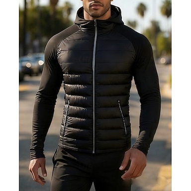 Voor heren Effen Hardloopjack Buitenjas Jack met capuchon Herfst winter Zak Capuchon Lange mouw Sportkleding Katoen waterdicht Winddicht Lichtgewicht Ademend Sportschooltraining Wandelen Hardlopen