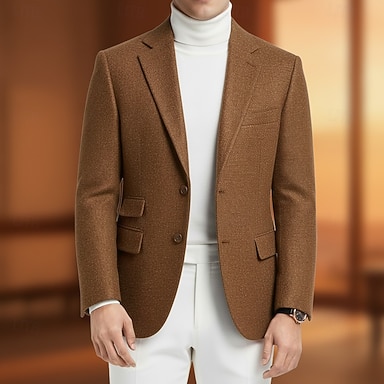 Voor heren Tweed blazer Inkeping kraag Modieus Klassiek Casual Effen Visgraat Blazer Bruin Donkerblauw Standaard pasvorm Enkele rij knopen met twee knopen