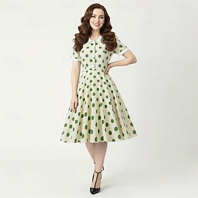 rockabilly Middag Een lijnjurk Korte mouwen Polka dots Wijd uitlopend Kostuum Dames Carnaval Valentijnsdag Casual Schoolfeest Retro themafeest Volwassenen Kleding Lente