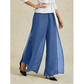 Dames Brutaal Breed Been Chinese Broek met rechte pijpen Elegant Vakantie Stijlvol Volledige lengte Middelhoge taille Effen Kleur Effen Rekbaar Kantoor Vakantie Feest Wedgewood Zomer Lente Lente