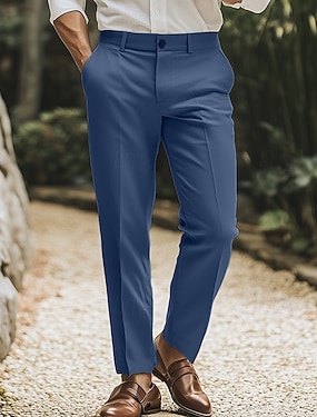 Voor heren Linnen broek Broek Pakken Zomerbroek Zak Recht been Effen Comfort Ademend Volledige lengte Buiten liiketoiminta Bruiloft Retro vintage Smart Casual Zwart Marineblauw