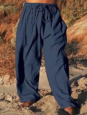 Voor heren Linnen broek Broek Zomerbroek Wijde broek Strandbroeken Trekkoord Zak Elastische taille Effen Comfort Ademend Volledige lengte Casual Dagelijks Feestdagen Vakantie Modieus Zwart Marineblauw