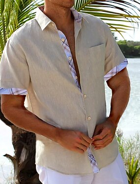 Voor heren Overhemd Linnen overhemd Zomer overhemd Strand hemd Effen Vakantie Casual Wit blauw Bruin Groen Korte mouw Kraag Zomer Lente Kleding Zak