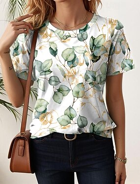 Dames T-shirt Bloemig Casual Korte mouw Ronde hals Normale tops Dagelijks Afdrukken Zwart Wit Lichtgroen blauw Paars Zomer