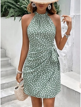 Dames Mini-jurk Zomerjurk halter jurk Casual Dagelijks Normale pasvorm Grafisch Stip Mouwloos Halternek Lichtgroen Blozend Roze Marineblauw Khaki Zomer