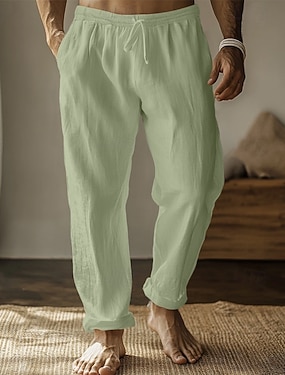 Voor heren Linnen broek Broek Zomerbroek Wijde broek Elastische taille Recht been Effen Comfort Ademend Volledige lengte Huis Yoga Dagelijks Modieus Klassieke Stijl Zwart Lichtgroen