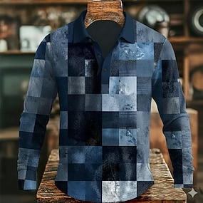 Voor heren Abstract Meetkundig Polo Lange mouw Poloshirt Revers Casual Buiten Straat Sportkleding Alledaagse kleding 3D-afdrukken Knop Lente Herfst Winter blauw Groen