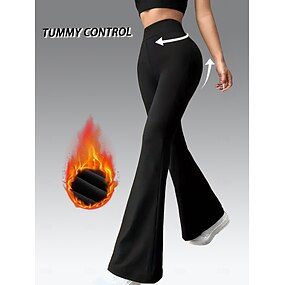 Dames EU / VS maat Grote maten Bell Bottom Recht Casual Comfortabel Volledige lengte Hoge taille Eenvoudig Stijlvol Hoge snede Houd Warm Voor buiten Comfortabel Micro-elastisch Casual Casual