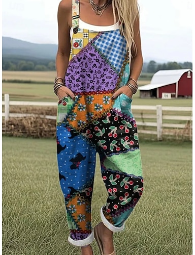 Dames Tuinbroek Actief Grafisch Mouwloos Breed Been Afdrukken Dagelijks Vakantie Ruim Passend blauw Geel Paars Zomer