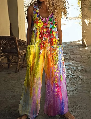 Dames Tuinbroek Actief Grafisch Mouwloos Mouwloos Breed Been Zak Knop Dagelijks Strand Ruim Passend blauw Blozend Roze Groen Zomer