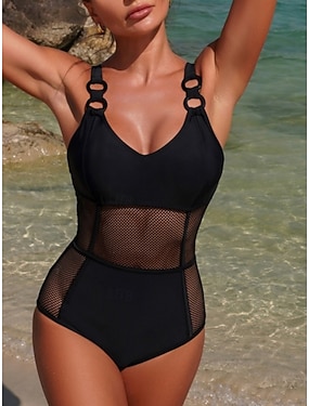Dames Badpak Slanker Sexy Uitsnijding Monokini Mesh Buikcontrole Hoge Taille Slim Rugloos Vakantie Strandkleding Effen Kleur V Hals Mouwloze Badpakken