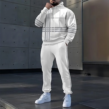 Voor heren Gestreept 2 stuks 3D Sweatshirtsets Trainingspak Hoodie Sweatshirt Lange mouw Lange broek Capuchon Sportief Casual / Dagelijks Sportkleding 3D-afdrukken Kleurenblok Lente Herfst Winter