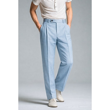 Heren Katoen Linnen Pakken Vrijetijdsbroek Formeel Vergadering Zakelijk Lichtgewicht Donkergroen Licht Grijs chocolade Lente zomer Broeken Effen Kleur Normale pasvorm Lang Inelastisch