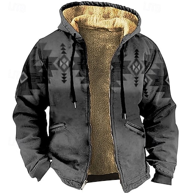 Voor heren Grafisch Meetkundig Trui met capuchon Jack Bohemen Modieus Streetwear Casual Lange mouw Capuchon Buiten Buitensporten Uitgaan Grijs Zak Afdrukken Fleece Winter Ontwerper S M L XL 2XL 3XL