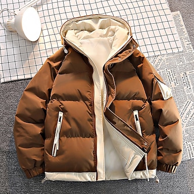 Voor heren Winterjas Pufferjas Gewatteerde jas Zak Polyester Vakantie Alledaagse kleding Afspraakje Normaal Modieus Casual Comfortabel Thermisch Warm Herfst winter Effen / effen kleur Kameel blauw