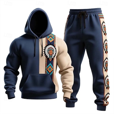 Voor heren Meetkundig 2 stuks 3D Sweatshirtsets Hoodie Sweatshirt Lange mouw Lange broek Capuchon Etnische stijl Casual / Dagelijks Sportkleding 3D-afdrukken Etnisch & Religieus Lente Herfst Winter