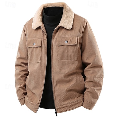 Voor heren Fleecejack Vrijetijdsjas Kantoor Casual Comfortabel Lapwerk Zak Herfst Herfst winter Met Textuur Vintage Streetwear Strijkijzer Normaal blauw Zwart Wit Groen Khaki Jacks