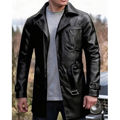 Voor heren Trenchcoat van imitatieleer Peacoat Regenjas Vakantie Dagelijks Lente Herfst PU Winddicht bovenkleding Kleding Modieus Klassiek Effen Zak Revers Enkele rij knopen