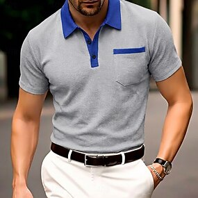 Voor heren Golfshirt Piqué poloshirts Casual Werk Revers Geribbelde polokraag Korte mouw Basic Modern Kleurenblok Lapwerk Zak Lente zomer Zomer Normale pasvorm blauw Wit Rood Grijs Golfshirt