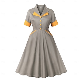 Elegant Jaren '50 Retro vintage Tot de knie Jurken Een lijnjurk A-lijn Kostuum Dames Casual Maskerade Teaparty Volwassenen Kleding Lente