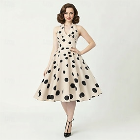 rockabilly Middag Een lijnjurk Polka dots Wijd uitlopend Kostuum Dames Carnaval Valentijnsdag Casual Schoolfeest Retro themafeest Volwassenen Kleding Zomer Lente