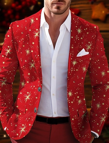 Voor heren Blazer Prestatie Cocktailparty Modieus Casual Lente & Herfst Polyester Ster Zak Knop Comfortabel Enkele rij knopen Blazer Rood