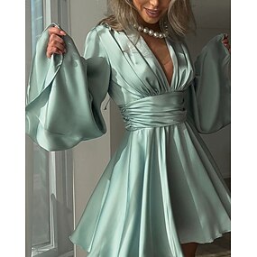 Dames Halflange jurk Satijnen Jurk Feestjurk Cocktail jurk Elegant Modieus Modern Avond Feest Feest Normale pasvorm Effen Lange mouw V-hals Blozend Roze Leger Groen Donkergroen Bruin Zomer Herfst