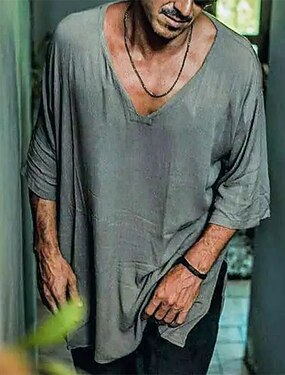 Voor heren Overhemd Linnen overhemd Viking-stijl Zomer overhemd Strand Kleding Effen Vakantie Straat Groen Beige Lange mouw V-hals Zomer Lente Kleding