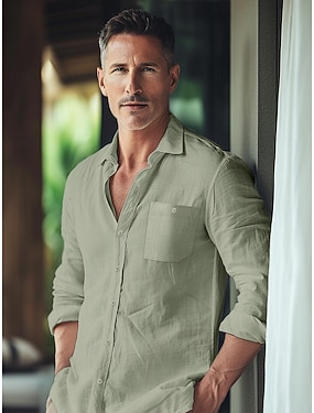 Voor heren Overhemd linnen overhemd Strand hemd Effen Kleur Vakantie Curise Wit blauw Groen Khaki Lange mouw Omgeslagen kraag Kleding Zak