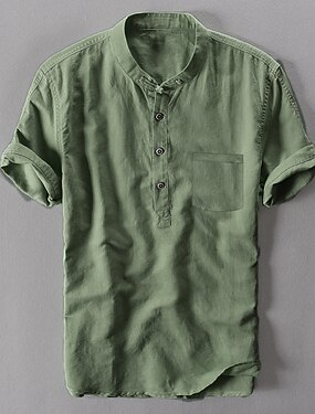 Voor heren Overhemd met bandkraag Popover-shirt Zomer overhemd Strand Kleding Normaal shirt Effen Buiten Feestdagen Wit Blauw Groen Grijs Korte mouw Henley Lente zomer Kleding