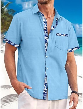 Voor heren Overhemd linnen overhemd Strand hemd Hawaiiaans overhemd Bloemig Buiten Straat Groen Korte mouw Strijkijzer Zomer Lente Kleding Afdrukken