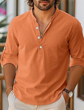 Voor heren Overhemd linnen overhemd Chinees kraag overhemd Mandarijn kraag overhemd Normaal shirt Overhemd met knopen Effen Vakantie Hawaii Rood Donkergroen Khaki Lange mouw opa kraag Lente & Herfst