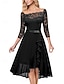 Dames Halflange jurk A lijn jurk Jurk met ruches Elegant Feest cocktail Buiten Feest Bruiloft gast Slank Effen Kleur 3/4 mouw Schouderafhangend Zwart Marineblauw Zomer Herfst