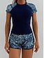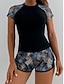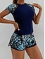 Dames Zwemkleding Tankini 2 stuks Korte broek Zwempak Buikcontrole Hoge taille Slank Blote rug Vakantie Strand Kleding Bloemig Bladeren Ronde hals Korte Mouw Badpakken