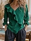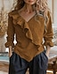 Dames Blouse Effen Vintage Stijlvol Lange mouw V-hals Normale tops Dagelijks Feestdagen Uitgaan Ruche Lapwerk Zwart Rood Marineblauw Groen Khaki Zomer Lente Herfst