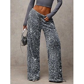 Dames Breed Been Broeken Sprankelende broek Elegant Modieus Glitter Volledige lengte Hoge taille Effen Pailletten Comfortabel Micro-elastisch Club Feest Straat blauw bordeaux M beige Roze Goud Zomer