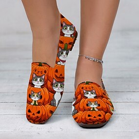 Halloween loafers met kattenprint voor dames – zwart-witte flyknit instappers met schattig cartoonontwerp voor casual feestoutfits