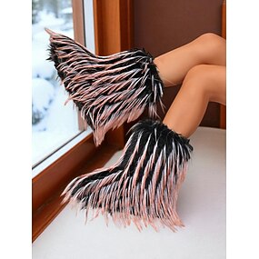 Damesmode harige platformlaarzen - roze en zwarte pluizige statement schoenen voor streetstyle, winteroutfits, rave-looks en trendy festivalkleding