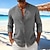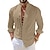 Voor heren Linnen overhemd Popover-shirt Normaal shirt Strand hemd Overhemd met bandkraag Effen Casual Strand blauw Zwart Wit Blozend Roze Lange mouw Henley Zomer Lente zomer Kleding Knop