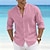 Voor heren Overhemd linnen overhemd Zomer overhemd Strand Kleding Overhemd met knopen Effen Kleur Vakantie Curise Zwart Wit Roze blauw Lange mouw Zomer Kleding